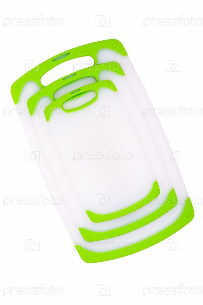 Набор белых кухонных разделочных досок с зелеными ручками для приготовления пищи
