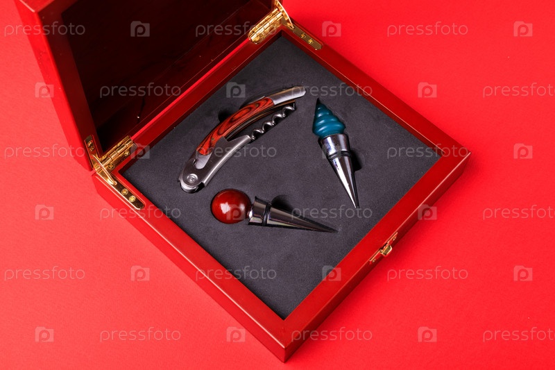 Винные пробки и открывалки для бутылок в деревянном ящике