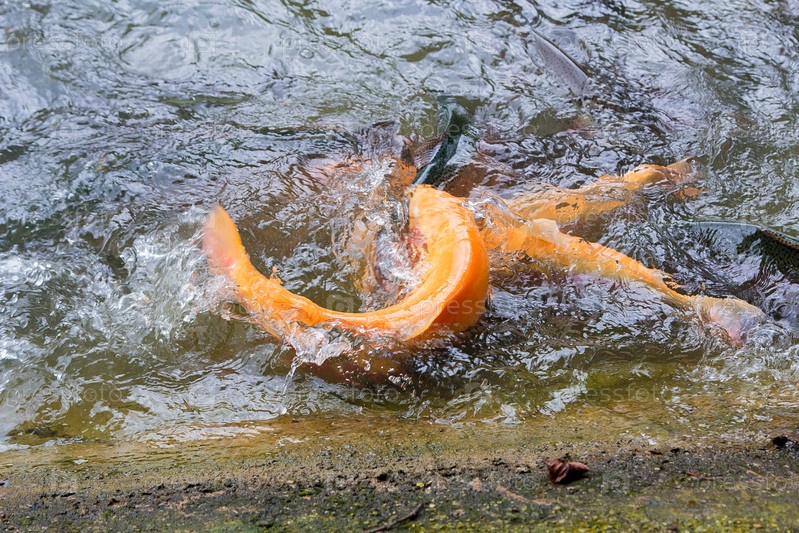 Золотая, радужная форель на рыбной ферме плещется в воде