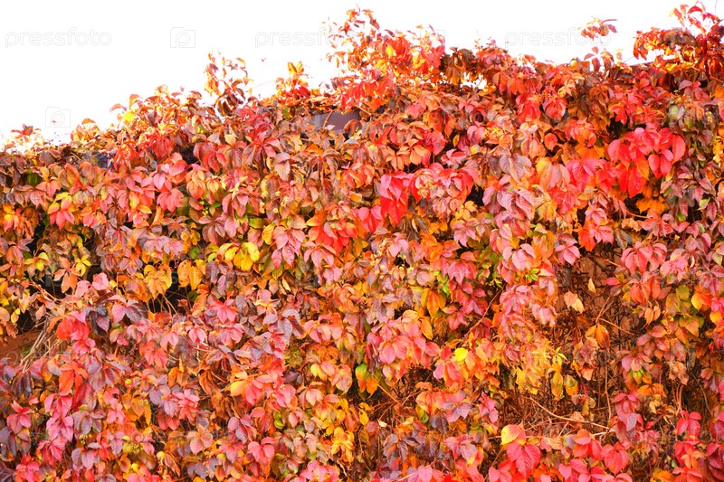Разноцветные листья дикого или девственного винограда (лат. Parthenocissus) осенью