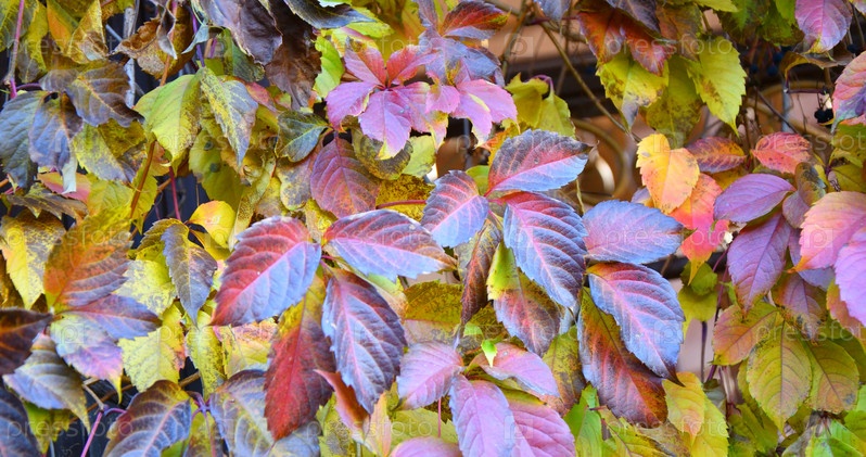 Разноцветные листья дикого или девственного винограда (лат. Parthenocissus) осенью