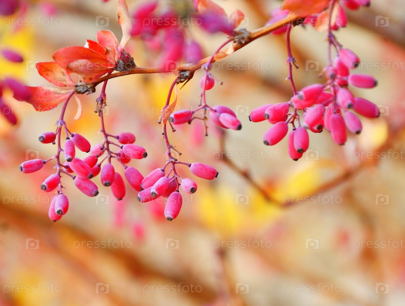 Ягоды барбариса (лат. Berberis) осенью