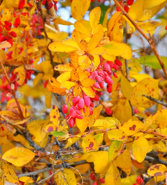 Ягоды барбариса (лат. Berberis) осенью