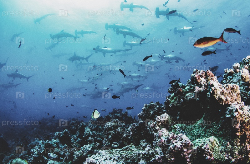 Акула-молот (Sphyrnidae) плавает в тропических водах