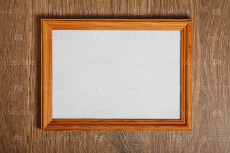 Пустая фоторамка в стиле бохо на деревянном фоне. Изолированная белая светлая деревянная рама с горизонтальными вывесками для художественных работ, надписей или логотипов. Скопируйте место для сайта или баннера