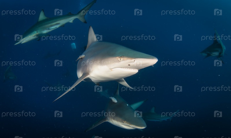 Черноперая океанская акула плавает в тропических водах