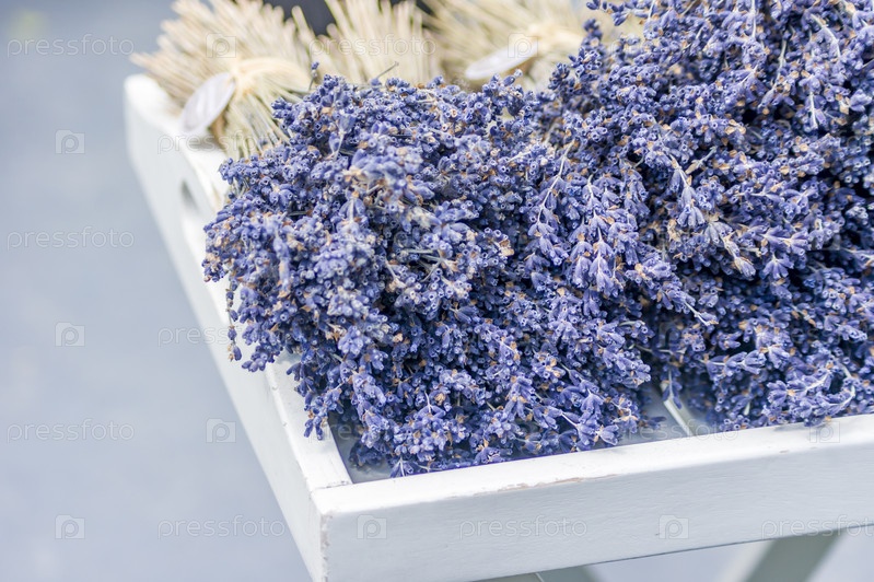 Букеты сухой лаванды на деревянном столе