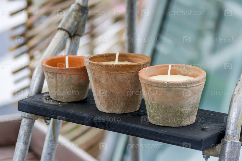 Три декоративные свечи в горшках