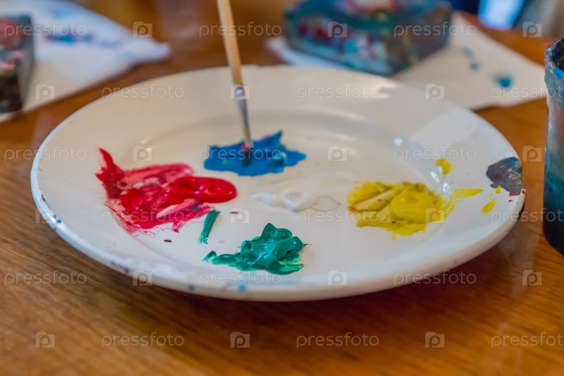 Тарелка с акриловой краской для украшения