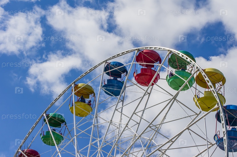 Красочное колесо обозрения на фоне голубого неба с облаками