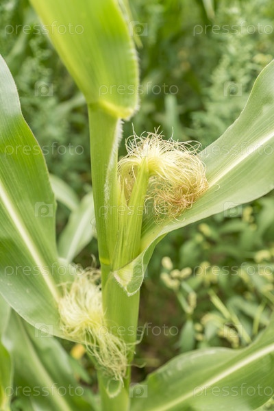 Крупный план растущей кукурузы