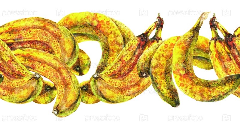 Бесшовный узор из бананов, акварель