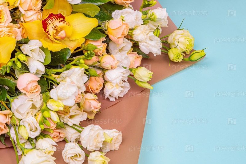 Свежий букет в пастельных тонах розового, белого, зеленого, желтого