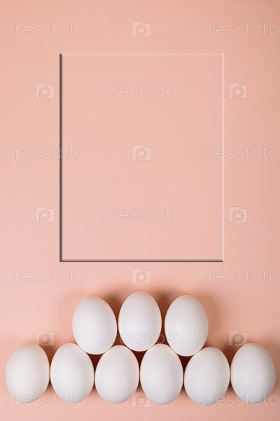 Пасхальные яйца белые на розовом фоне с местом для текста