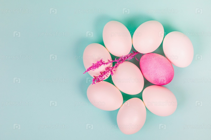 Пасхальный. Белые яйца с красным, на однородном голубом фоне