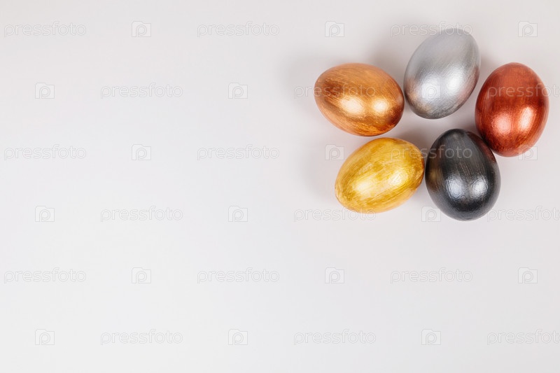 Разноцветные яйца на однородном белом фоне с местом для текста