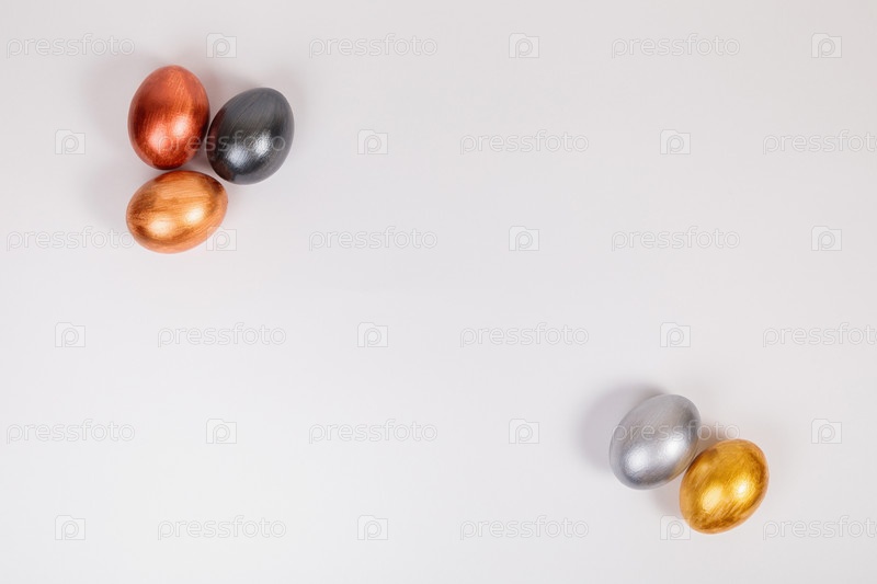 Разноцветные яйца на однородном белом фоне с местом для текста