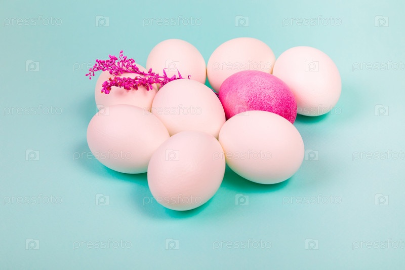 Пасхальный. Белые яйца с красным, на однородном голубом фоне
