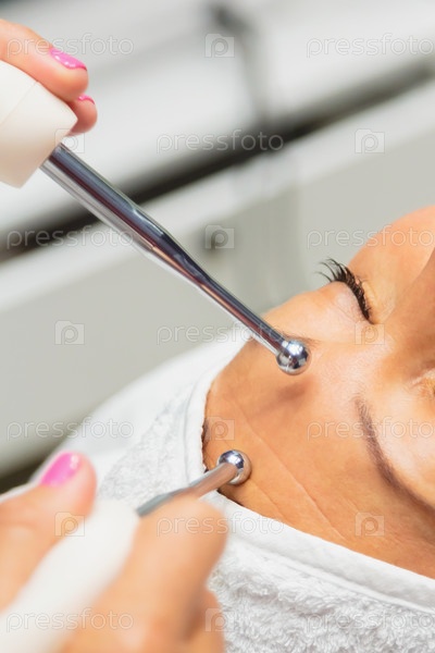 Девушка проходит процедуру в салоне красоты с применением микротоковых препаратов
