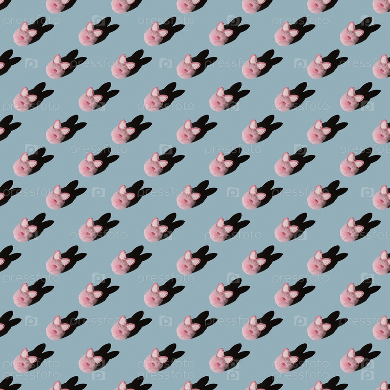 Пасхальный узор, розовый кролик на синем фоне