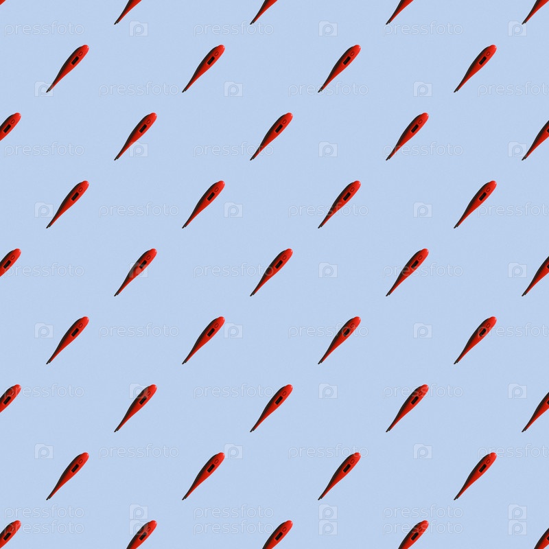 Электронный термометр на синем фоне, бесшовный узор