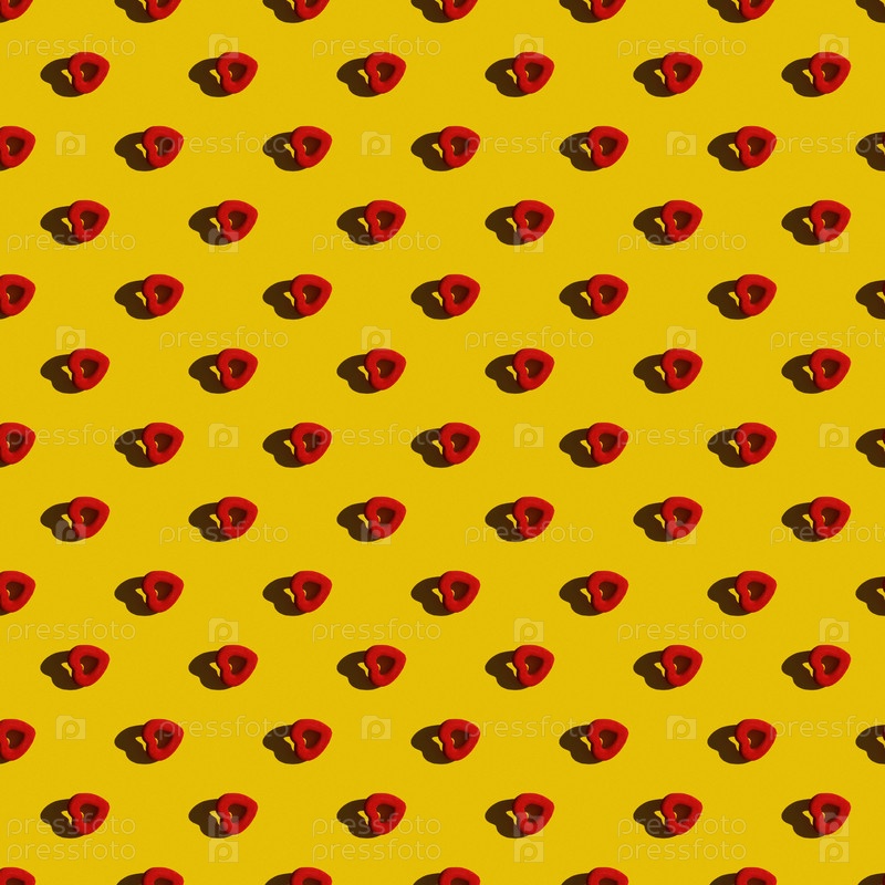 Шаблон. Красное сердце в ряд по диагонали на желтом фоне