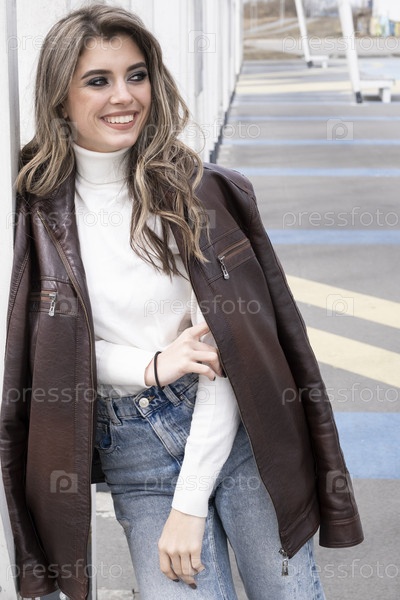Красивая молодая девушка с вечерним макияжем, позирует среди деревянных конструкций