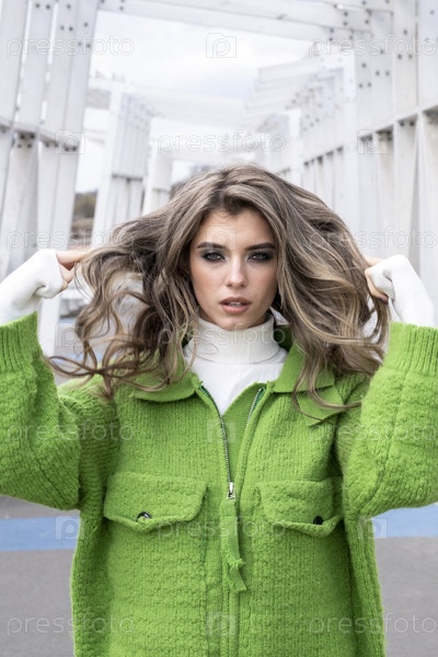 Красивая молодая девушка с вечерним макияжем, позирует среди деревянных конструкций