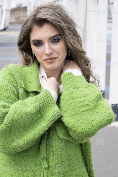 Красивая молодая девушка с вечерним макияжем, позирует среди деревянных конструкций