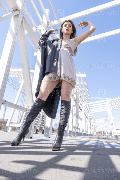 Красивая молодая девушка с ярким макияжем. Уличный портрет
