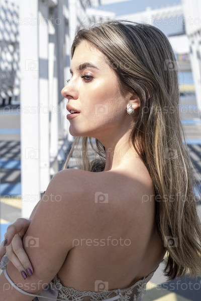 Красивая молодая девушка с ярким макияжем. Уличный портрет