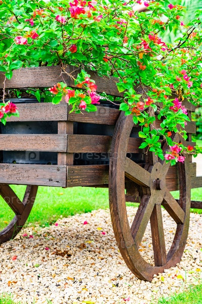 Декоративная деревянная тележка с цветами