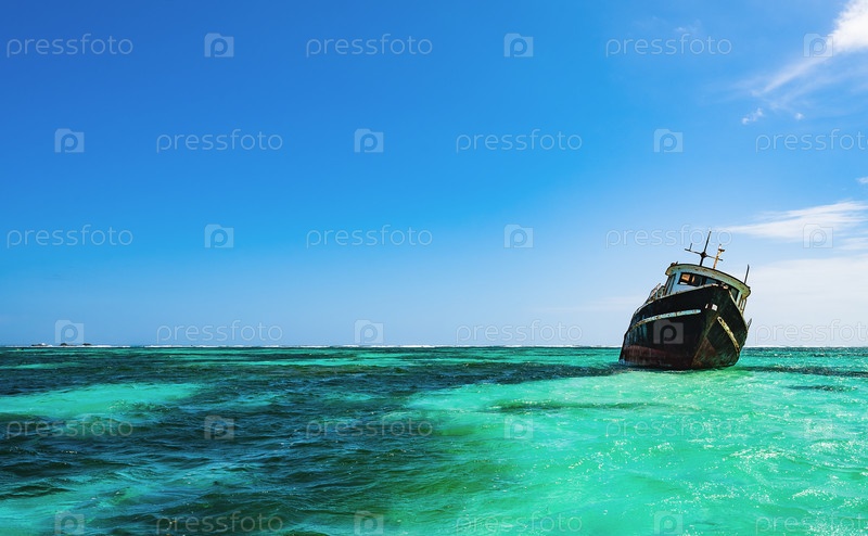 Старый заброшенный корабль на мели
