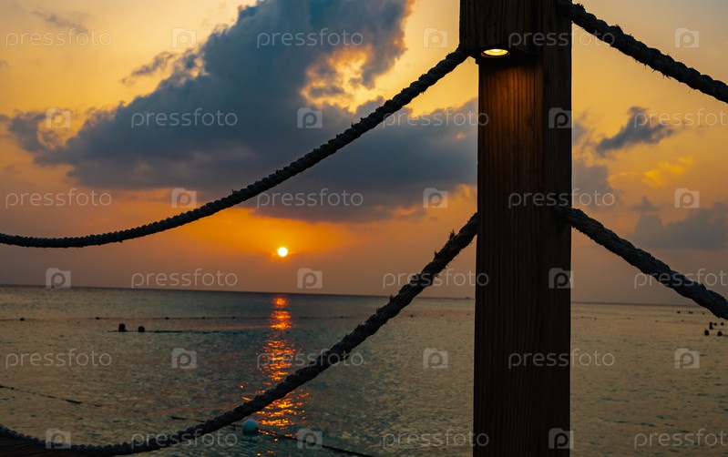 Деревянная пристань с подсветкой на закате