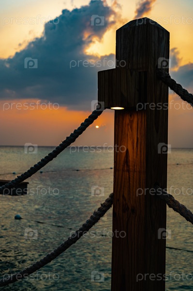 Деревянная пристань с подсветкой на закате
