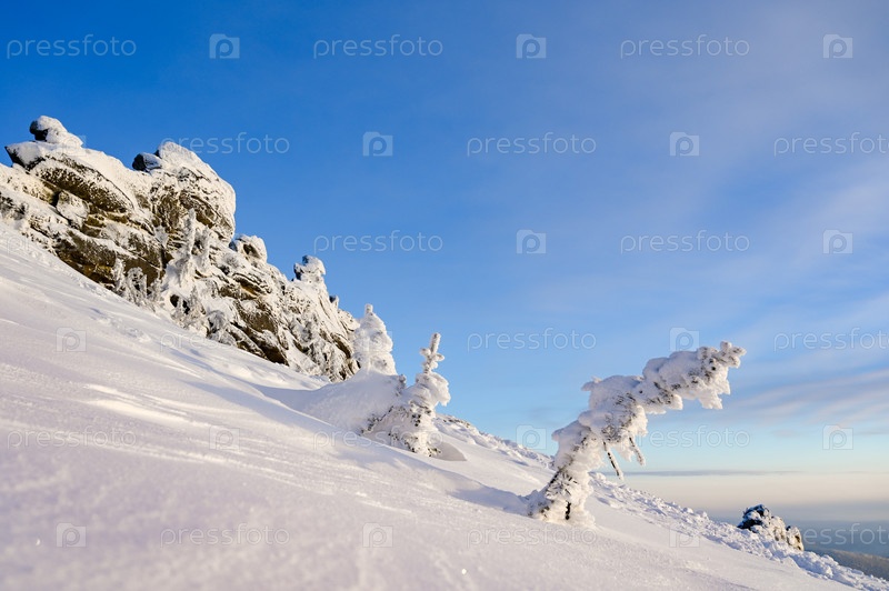 Скала зимой покрыта снегом
