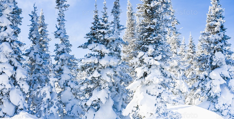 Заснеженные деревья в зимнем пейзаже
