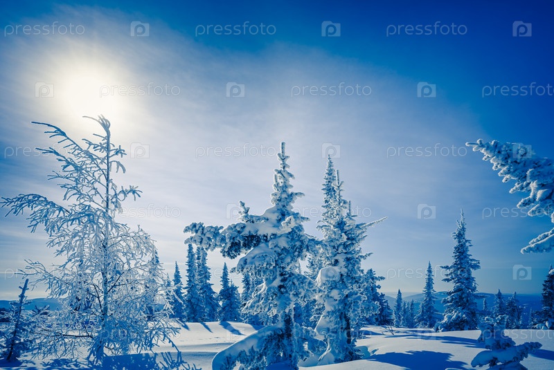 Заснеженные деревья в зимнем пейзаже
