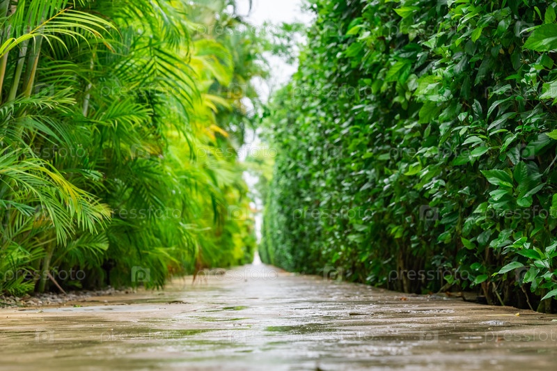 Зеленая тропическая аллея пальм