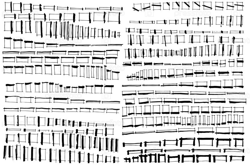 Большой набор простых форм линий. набор чернильных пятен и линий. Линии, полосы, следы. Грязные чернила. Хаотично нарисованные линии. Стилизация. Текстурированные формы фона. Графические формы и полосы