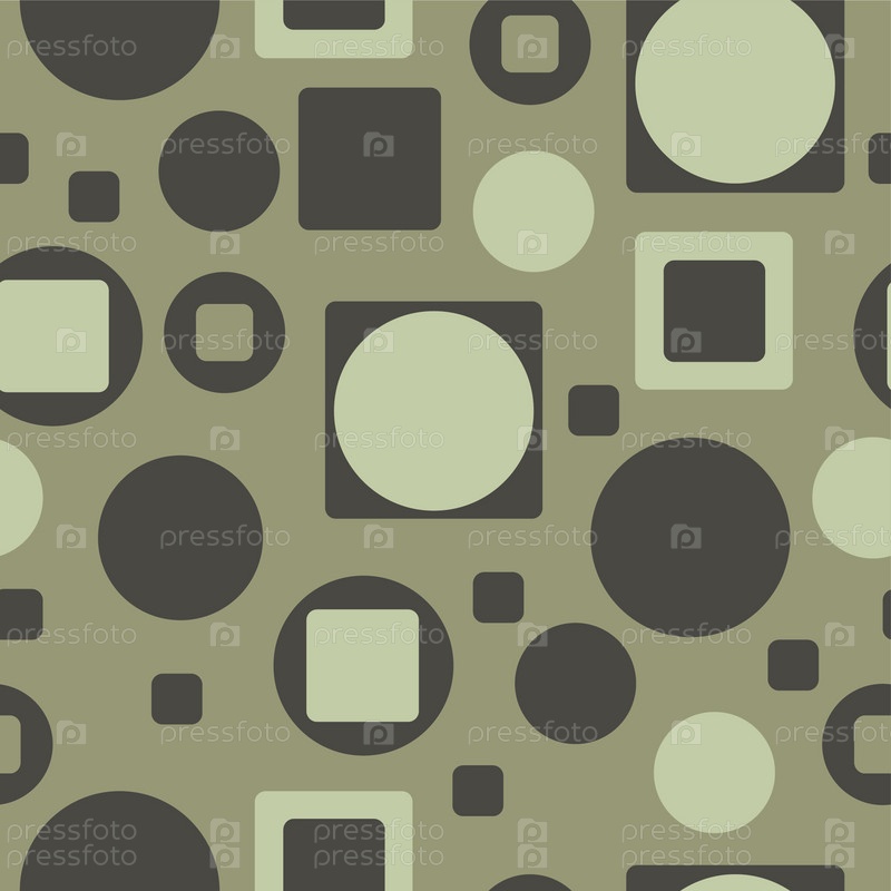 Рисунок с геометрическими фигурами. Зеленый узор с кругами и квадратами
