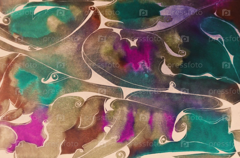 Абстракция тушью и красками. Абстракция, нарисованная акварелью. Цветной фон, нарисованный красками. Текстурированный фон. Мазки. Пятна и полосы. Брызги кисти