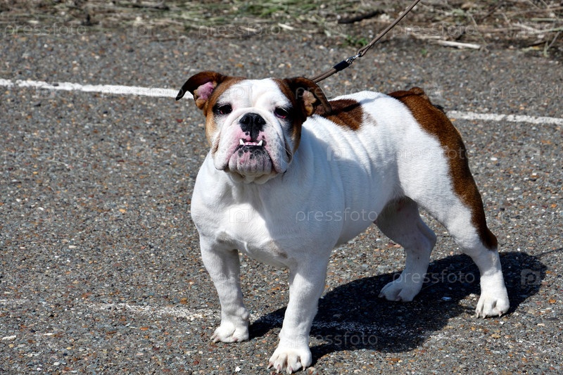 Английский бульдог (бульдог) на прогулке