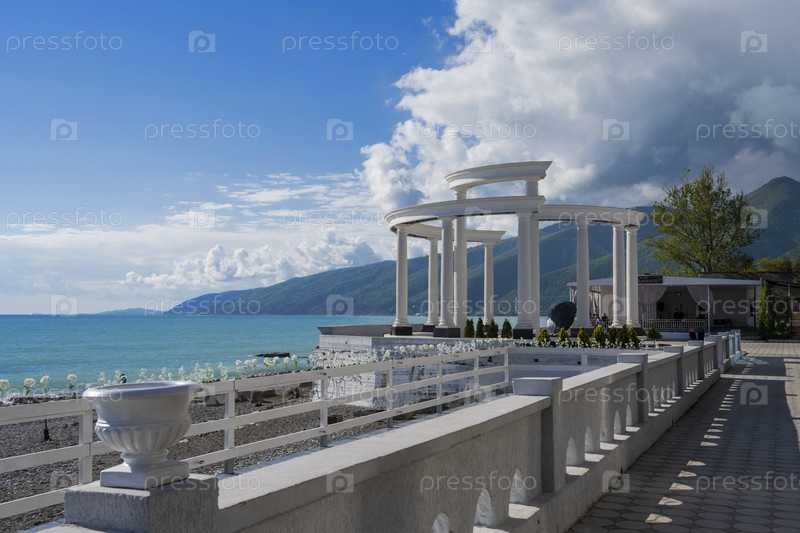 Набережная в городе Гагра в Республике Абхазия. Ясный солнечный день 10 мая 2021 г