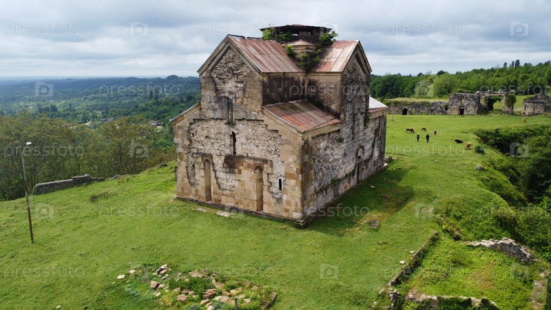 Древний бедийский храм в горах Республики Абхазия. Пасмурный день 19 мая 2021 г