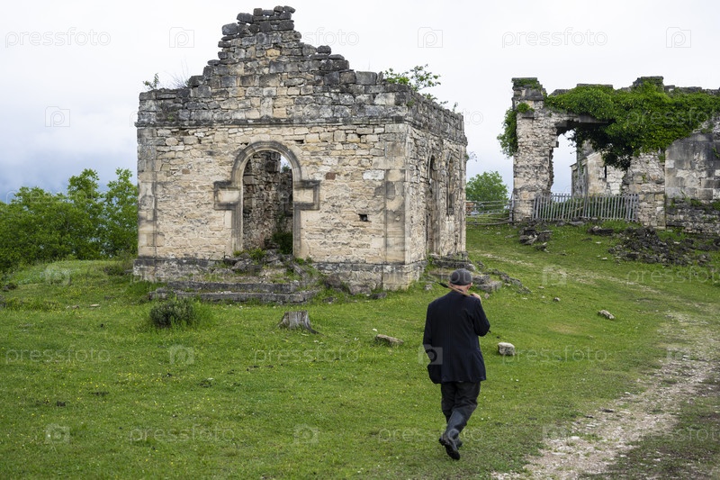 Древний бедийский храм в горах Республики Абхазия. Пасмурный день 19 мая 2021 г