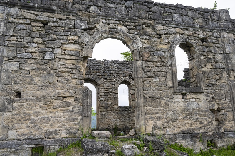 Древний бедийский храм в горах Республики Абхазия. Пасмурный день 19 мая 2021 года
