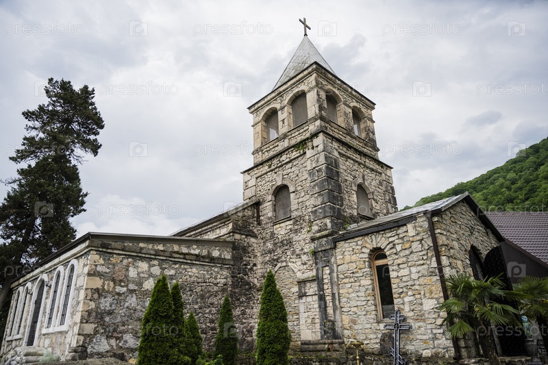 Каменский монастырь в Республике Абхазия. Пасмурный день 17 мая 2021 г