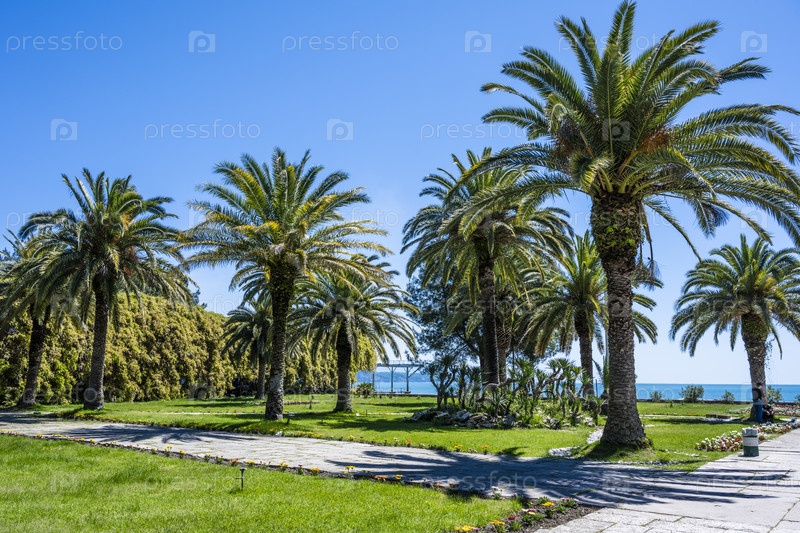 Пляж в Пицунде, Республика Абхазия. Ясный солнечный день 13 мая 2021 г