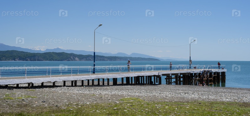 Пляж в Пицунде, Республика Абхазия. Ясный солнечный день 13 мая 2021 г